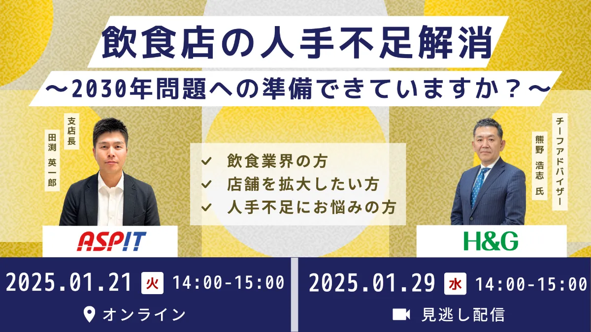 【1.21・1/29 共催セミナー】飲食店の人手不足解消~2030...