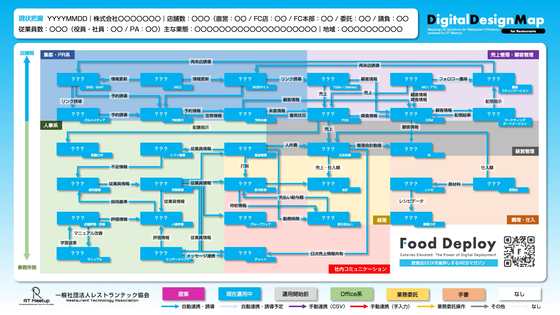 デジタルデザインマップは、飲食店の業務と情報を網羅的に可視化できるマップです。